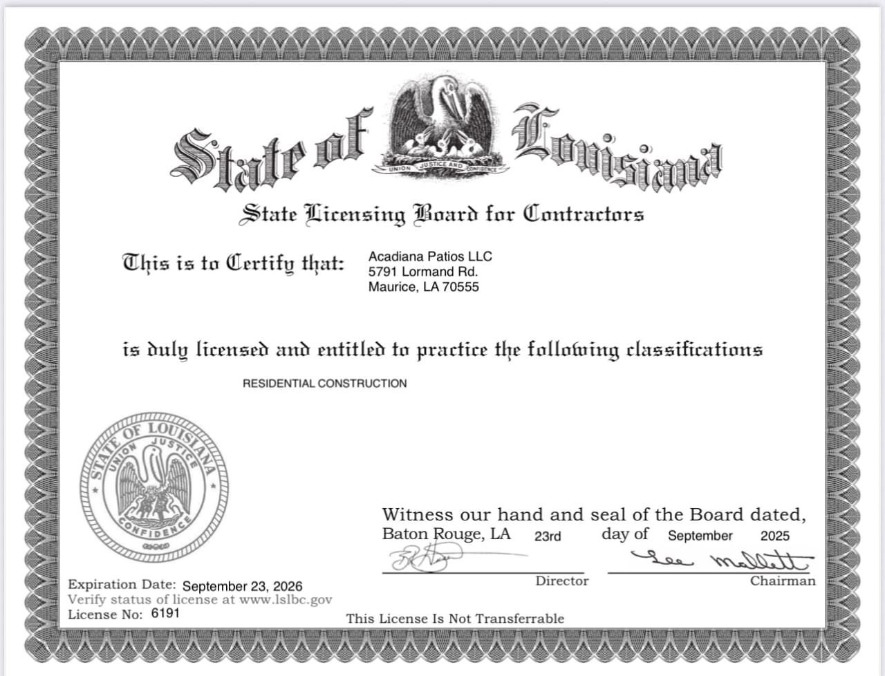 Acadiana Patios and Construction is a full-service Home Improvement Contractor. Serving the Greater Lafayette Louisiana and Acadiana areas. Providing high-quality Patio Improvement & Remodeling services at competitive pricing.